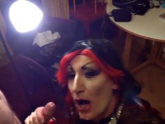 Shemale Jessica Fox gets sucked by and fucks a crossdresser